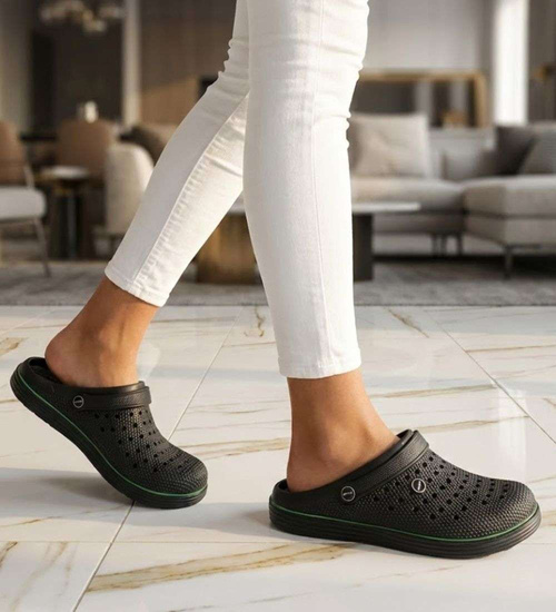 Wodoodporne czarne kryte klapki damskie ażurowe /H2 18643 S185/