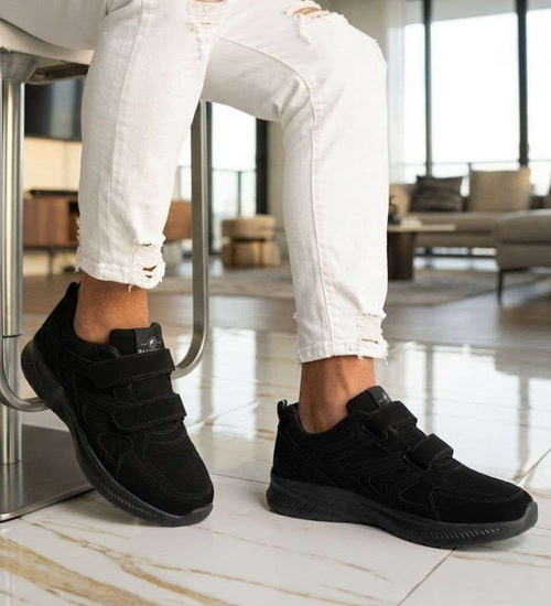 Czarne męskie buty sportowe na rzepy sneakersy /G12-1 15790 T289/