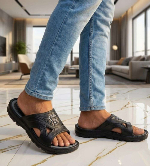 • Czarne klapki chłopięce wykonane z lekkiego materiału gumowo-piankowego to praktyczne obuwie na letnie dni.