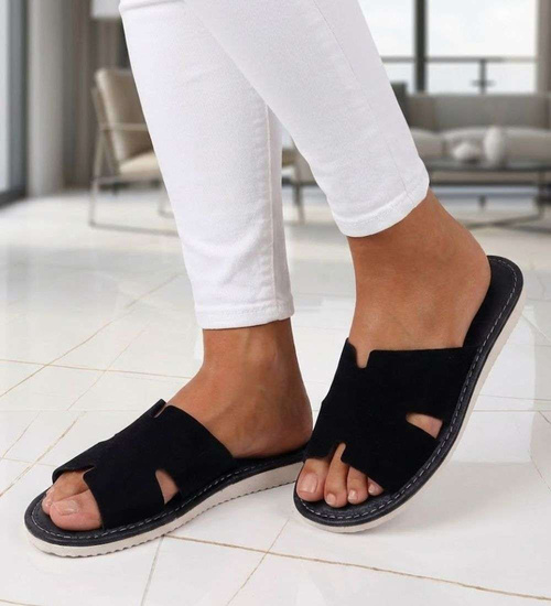 Skórzane zamszowe kapcie w kolorze czarnym- komfort w domowym wydaniu