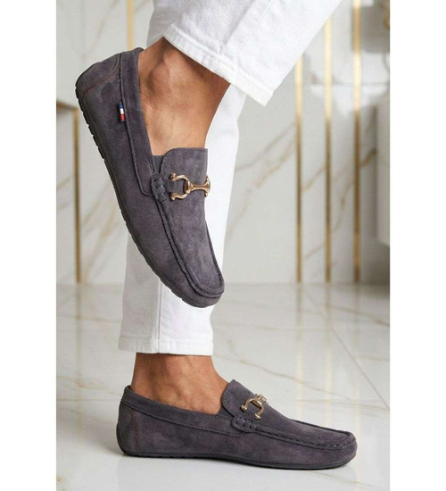 - Szare mokasyny męskie z ozdobną klamerką to idealna alternatywa dla klasycznych półbutów.