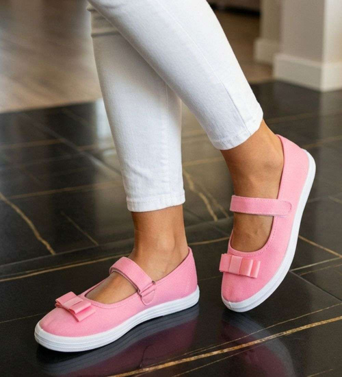 Różowe materiałowe baleriny na rzep /F9-2 18683 T122/