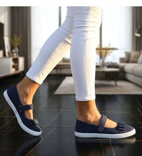 Granatowe materiałowe baleriny na rzep /G6-2 18682 T122/