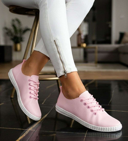 Różowe wiązane tenisówki damskie