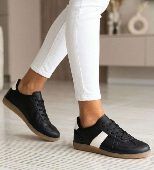 Czarne sneakersy damskie w stylu retro z białym paskiem