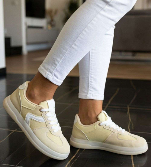 Wiązane snekaersy damskie żółte pastelowe /E1-1 18825 G455/