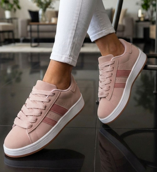 Pastelowe sznurowane trampki damskie Różowe /E6-2 18819 W385/