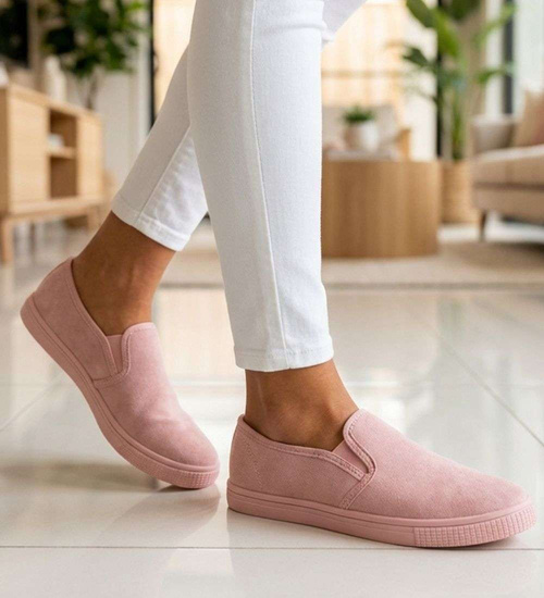 Wsuwane tenisówki z tkaniny pastelowe Pudrowy róż /F2-2 18764 T1/