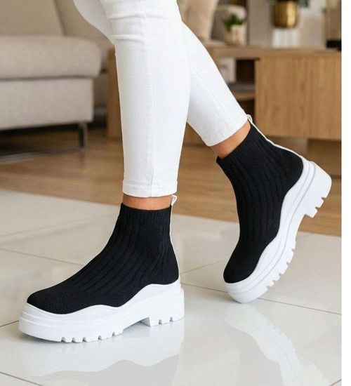 Czarne, wsuwane trampki w modnej odsłonie. Dzięki stylowi typu "sock shoes" (buty skarpetkowe), model ten idealnie wpisuje się w aktualne trendy, gwarantując jednocześnie komfort noszenia przez cały dzień.