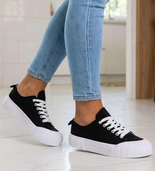 Czarne niskie trampki damskie z tkaniny /D3-1 15968 G157/