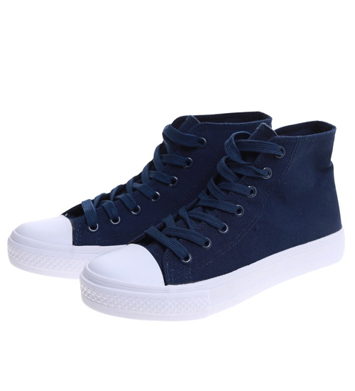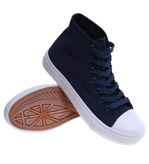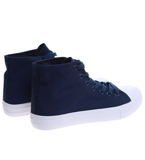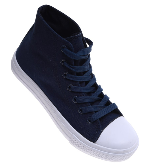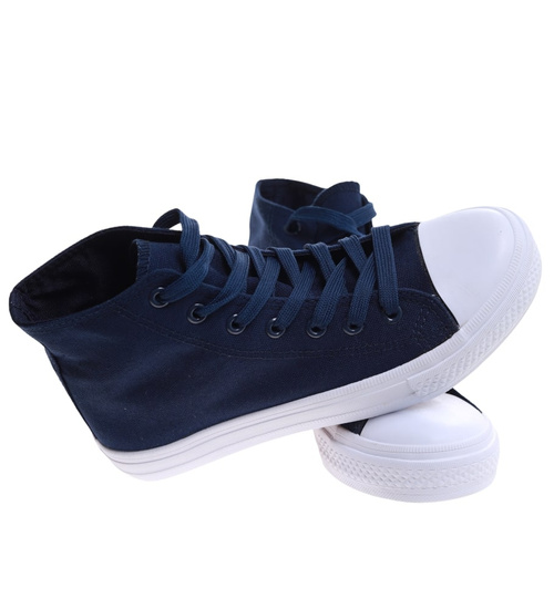 Klasyczne granatowe trampki damskie z wysoką cholewką /H2 16732 G9-84/