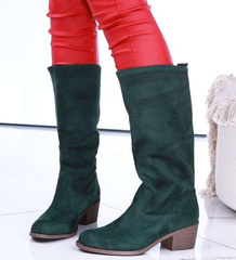 Ażurowe zielone wiosenne kozaki na klocku /G2-2 13528A W493/