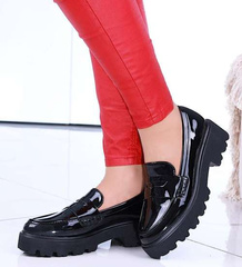 Wsuwane czarne loafersy damskie na platformie /G11-2 14650 T640/