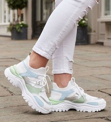 Sznurowane biało beżowe buty sportowe na platformie /G8-2 16805 T683/