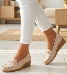 Beżowe czółenka oxfordy na koturnie /C4-3 14625 T427/
