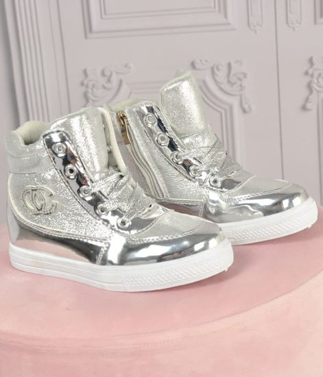 Zimowe dziewczęce botki trapery sznurowane Srebrne /E6-1 18533 T284/
