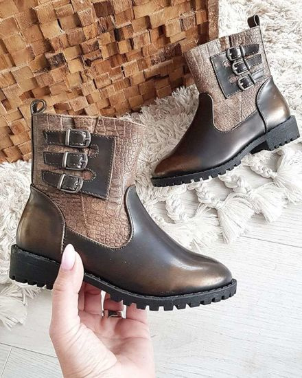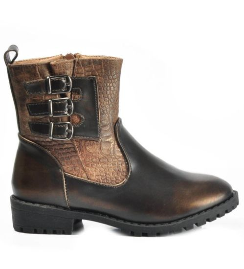 Oliwkowe matowe dziewczęce botki ocieplane /G13-2 18375 T188/