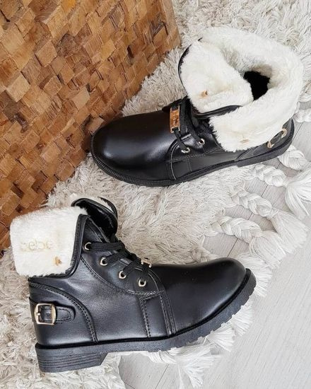 Zimowe czarne dziewczęce trapery z futerkiem /F6-2 18438 T399/