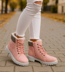 Zimowe różowe dziewczęce trapery z futerkiem /G9-2 17127 T295/