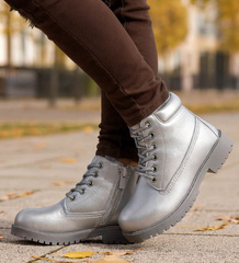(ilość produktów: 211)Zimowe dziewczęce botki trapery sznurowane Srebrne /E6-1 18533 T284/
