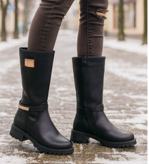 Czarne zimowe kozaki z futerkiem /B7-3 18530 T398/