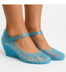 Wodoodporne sandały meliski na koturnie Niebieskie Kryte /H2 14568 T890/