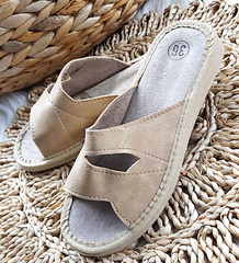Beżowe klapki z efektownym futerkiem /F4-1 3259 S195/
