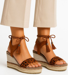 Camelowe sandały na koturnie i platformie /D8-3 14057 S291/