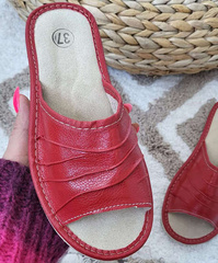 (ilość produktów: 718)Marszczone klapki domowe z naturalnej skóry Bordowe /B1-1 4828 S177/