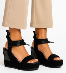 Czarne sandały na grubym obcasie /G10-3 16079 G137/