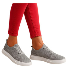Ażurowe letnie trampki na platformie Szare /D7-2 17918 G383/