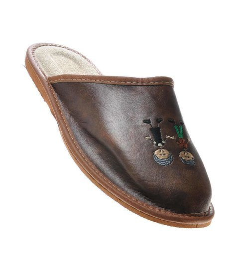 Skórzane męskie klapki domowe kapcie /E6-1 4832 S196/
