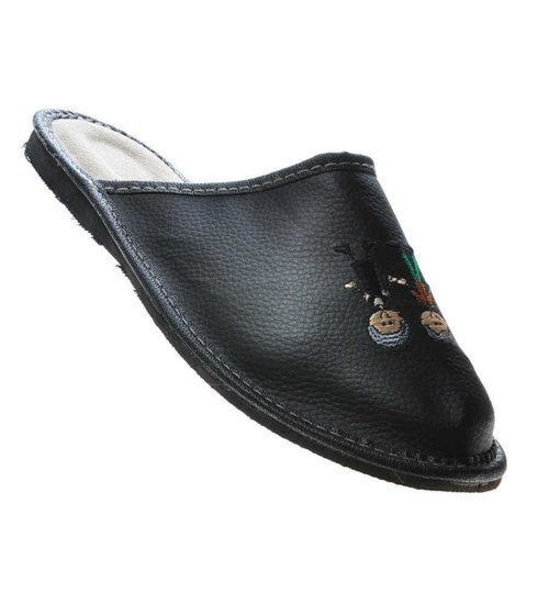 Grantowe męskie klapki domowe ze skóry naturalnej /B6-1 4980 S175/