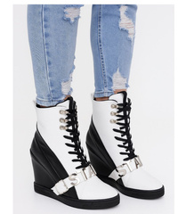 Sznurowane biało niebieskie trampki sneakersy koturnie /C4-3 18048 T284/