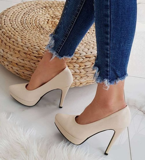 Beżowe półbuty loafersy damskie na platformie /H2 18628 W147/