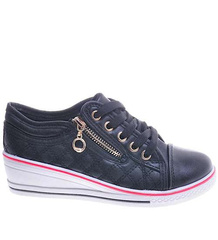Dziewczęce trampki na niskim koturnie Czarne /F7-3 11328 S10-5/
