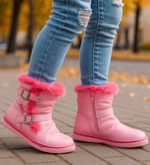 Zimowe botki trapery z futerkiem Różowe /C1-2 18279 T244/