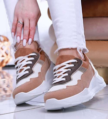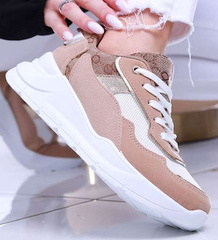 Beżowe buty sportowe na platformie z cyrkoniami /G3-1 17423 T891/