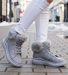 Szare ocieplane botki jak trampki z kożuszkiem /F9-2 15213 S291/
