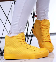 Klasyczne granatowe trampki damskie jeansowe z wysoką cholewką /H2 16729 G9-84/