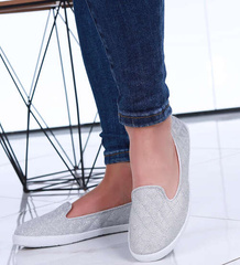 Materiałowe srebrne tenisówki wsuwane balerinki pikowane /B2-3 15438 T133/