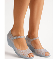 Plażowe sandały meliski na koturnie Srebrne otwarte /H2 14572 T890/