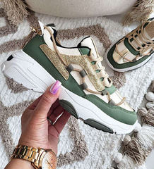 Zielone sportowe buty na platformie /F6-3 14615 T647/