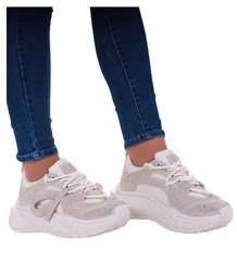 Beżowe buty sportowe na platformie z cyrkoniami /G3-1 17423 T891/