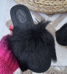 Czarne damskie klapki z kudłatym futerkiem Premium /E10-1 11319 S292/