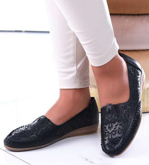 Czarne ażurowe balerinki damskie /G13-3 13538 T131/