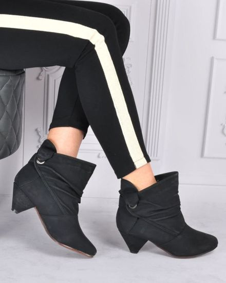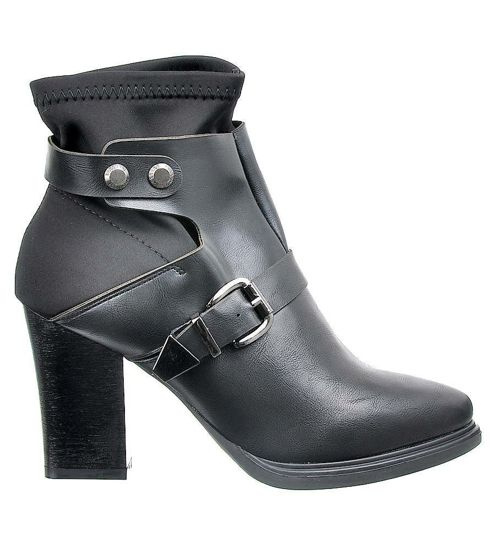 Czarne botki zimowe na grubym obcasie /E8-1 18558 G388/