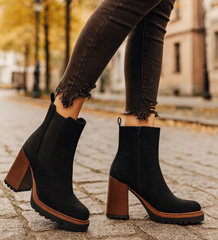 Czarne damskie botki z wycięciami /G13-3 13400 T198/