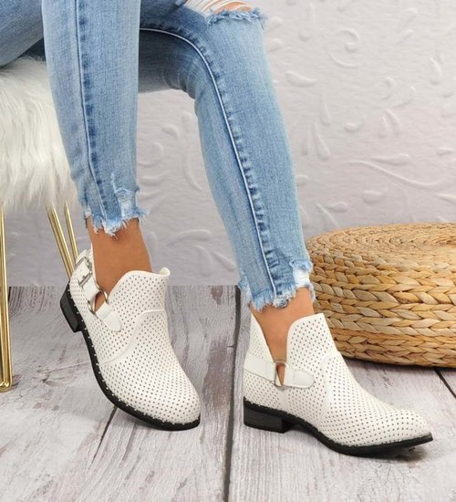 Białe botki damskie na niskim obcasie /E3-2 +i5-2 16858 G284 +H2/