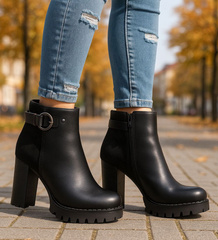 Czarne klasyczne botki damskie na obcasie /i4-2 h2 18394 W355/